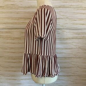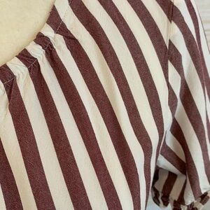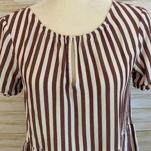 Madewell striped peplum hem top. White and maroon stripes. 100% viscose. Womens size Extra Small. Great used condition.