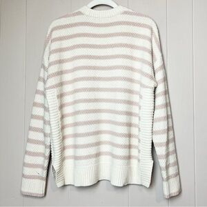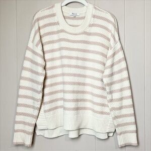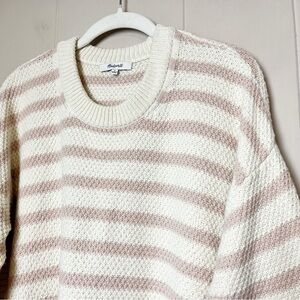 Madewell Striped Pickford Pullover Sweater Medium blush pink boxy split seam