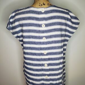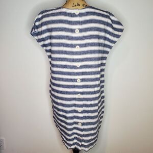 Madewell Striped Play Button Back Linen Blend Dress Size M