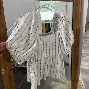 Madewell Striped Puff-Sleeve Empire Top