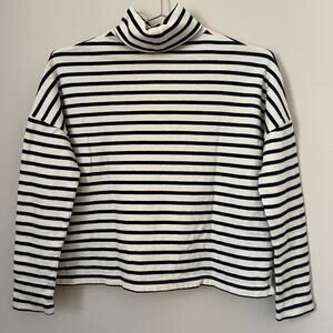Madewell Striped White & Navy Blue Cropped Turtleneck Sweater Size XS