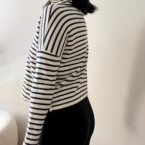 Madewell Striped White & Navy Blue Cropped Turtleneck Sweater. Size XS.