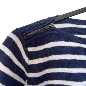 Madewell Striped Wool Blend Boat Neck Shoulder Zip Boxy Sweater Size XS
