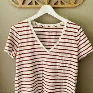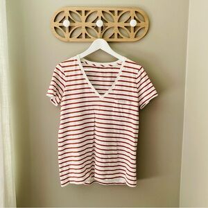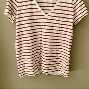 Madewell Stripped V-Neck Tee Shirt White/Orange Sz Medium