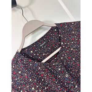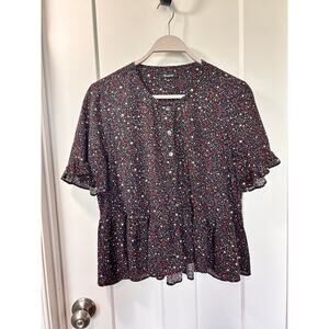 Madewell Studio Ruffle Hem Button Front Peplum Top in Starry Night Black Large