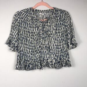 Madewell sunpleat lace up crop top painted feathers size small