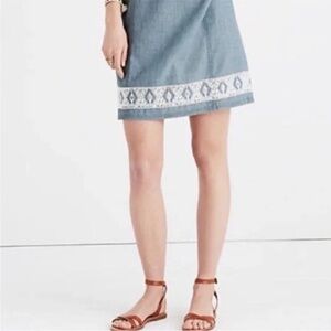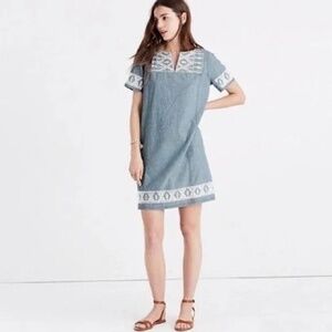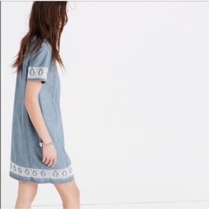 Madewell Sunstitch Chambray Embroidered Shift Dress - Blue Women's Size XL