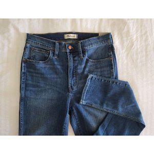 Stylish 10” high rise jeans. Classic medium dark blue color. Super soft and very comfortable. Good used condition, some signs of wear - slight puckering near the zipper shown in photos. No other known signs of wear or damage.