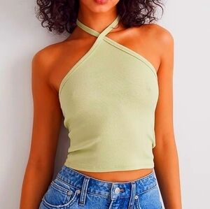 Madewell Supima® Rib Halter Tank Top in celery green size Large NWT NK640