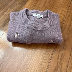 Madewell Sweater Medium Floral Purple Lavender Embroidered Cross Stitch Flowers