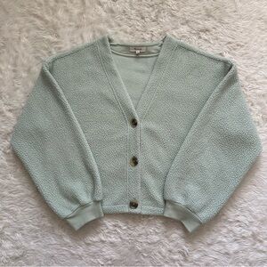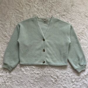 Madewell Sweater (Re)sourced Fleece Crop Cardigan Button Front Sunfaded Mint Sz L