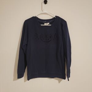 Madewell Sweater Size Large L Navy Blue Floral Cut Out Pullover