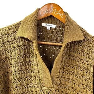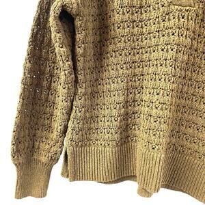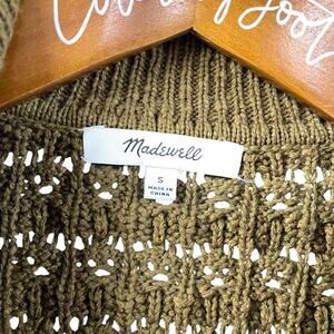 Madewell Sweater Sunbury Collared Olive Green 100% Cotton Open Knit Pullover