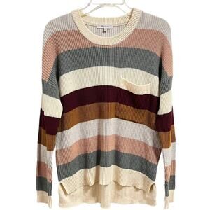 Madewell Sweater Sz XS Thompson Pocket Pullover Knit in Cream Green Multi Stripe