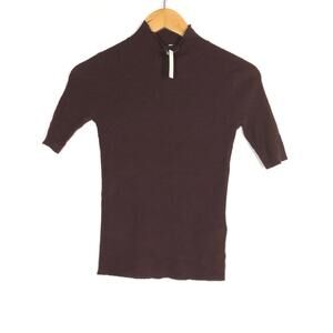Madewell Sweater Tee Ribbed 100% Merino Wool Mockneck Top Dark Burgundy NWT XXS