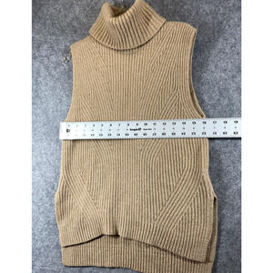 Madewell Sweater Vest Womens Small Camel Merino Wool Turtleneck High Low E6034
