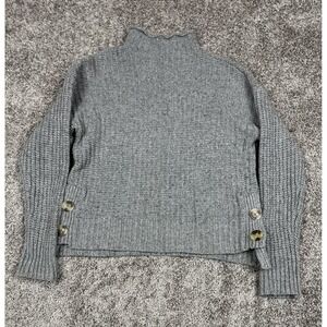 Madewell Sweater Womens Medium Gray Button Side Mock Neck Wool Cotton Blend Knit