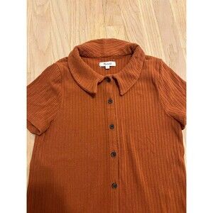 Madewell Sweater Women's S Orange Button Up Cardigan Short Sleeve Collared Knit