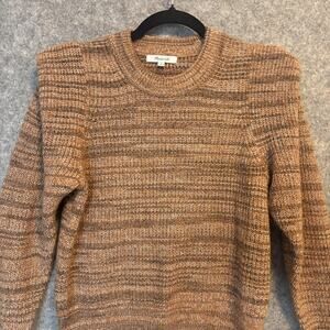 Madewell Sweater Womens Small Brown Wool Alpaca Blend Puff Shoulder Crewneck