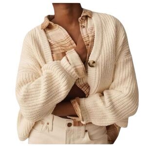 Madewell Sweater Womens XS Cream Cardigan Chunky Shirttail Academia Knit Open Cottagecore Layer Timeless Cocoon Transitional Jacket Outerwear