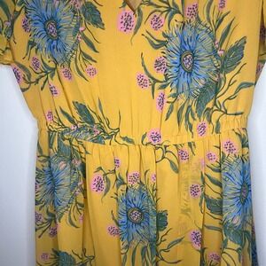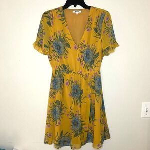 Madewell Sweetgrass Ruffle Sleeve Painted Blooms Yellow Floral Dress