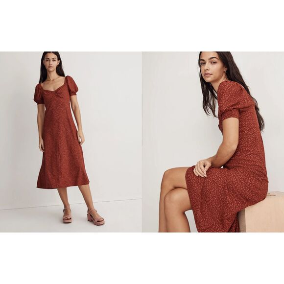 Madewell Sweetheart Puff Sleeve Midi Dress in Carmine Floral