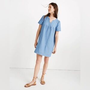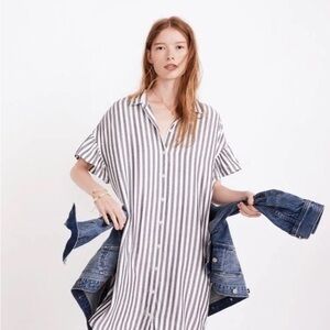 Madewell Swingout short sleeve lined 2 pocket V neck strip shirt dress Size XS
