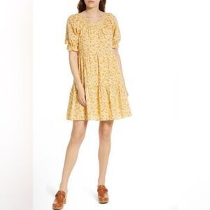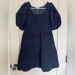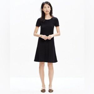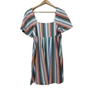 Madewell Swingout short sleeve lined 2 pocket V neck strip shirt dress Size X-Small.