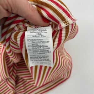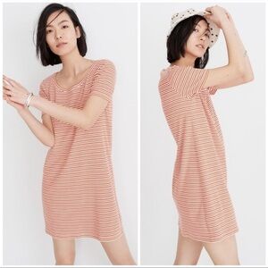 Madewell | Swingy Tee Dress in Stripe Pattern Cotton NWOT. Cotton blend soft stripe ribbed t-shirt style dress. Great for Layering. In red white and tan. In New without tag condition.