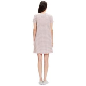 Madewell Swingy Tee Dress in Sacramento Stripe. Swingy and stretchy, this striped A-lined tee dress is made of the softest drapey jersey. Add sandals or sneakers for a perfect throw-on-and go outfit. Short sleeves and round neckline.