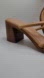 Excellent condition. Tan open toe leather upper comfy slip on block heel sandals.