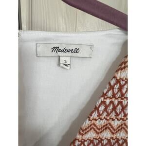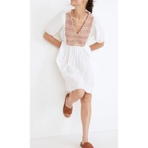Madewell Sz Large V Neck Smocked Embroidered Poplin Cotton Summer Mini Dress NWT