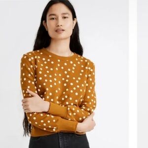 Madewell Sz S Banded Sweatshirt In Polka Dot Print Gold Cotton Polyester