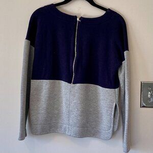Madewell Sz Small V-neck Color-block Split-hem Sweatshirt Back Zip NavyBlue Gray