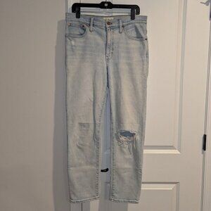 Madewell Tall Mid-Rise Classic Straight Jeans in Wellingford Wash: Knee-Rip Edition in size 30T