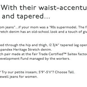 11" high rise, fitted through the hip and thigh, 12 3/4" tapered leg opening, 31" inseam