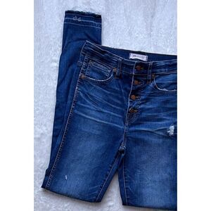 Lean and legs-for-days sexy, our 10" high-rise jeans have an extra layer of holds-you-in sorcery in front, thanks to our supersleek Magic Pockets. Plus, we let down the hems of these button-through skinnies for a cool raw-edged look.