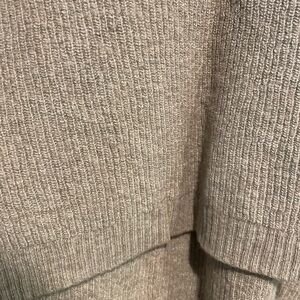 This Madewell sweater in a warm tan hue features a classic crew neckline and a relaxed fit, perfect for layering. Its minimalist design and soft knit texture make it a versatile addition to any wardrobe.  High/low hem