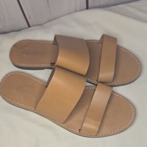 Madewell Tan Leather "The Boardwalk" Double Strap Sandals Size 8.5