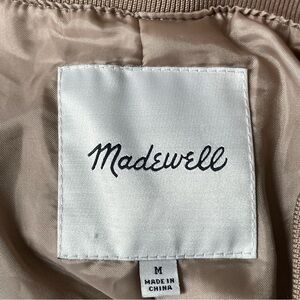 Madewell Tan Velvet Sil Blend Full Zip Bomber Jacket -Size Medium