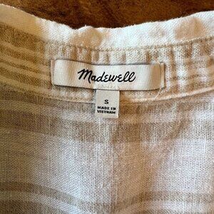 Madewell Tan & White Stripe Short Sleeve Button Front Shirt Linen Blend S