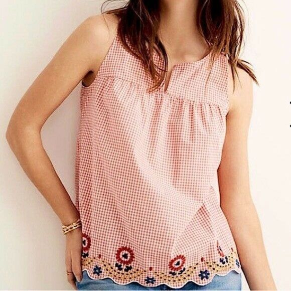 Madewell Tank Top Red White Embroidered Checkered Gingham Sleeveless Size XS
