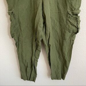 Madewell Tapered Huston Cargo Pull-On Crop Pants Linen Blend Green Medium