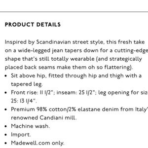 Madewell Tapered Jeans in Bellclaire Wash High Rise 26 Crop Length Blue