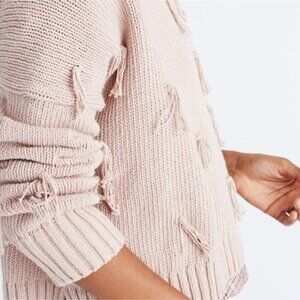 Madewell Women's Tassel Fringe Pullover Sweater Plaster Crop Length Slouchy Long Sleeve Crew Neck M