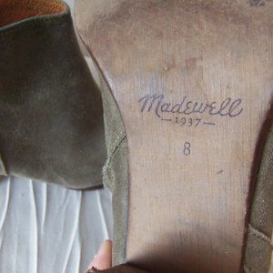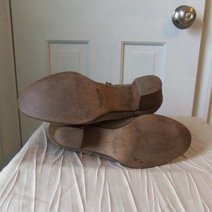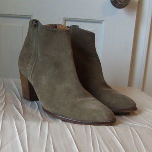 Dark taupe (has an olive tint in certain lights) suede with brown block heel
