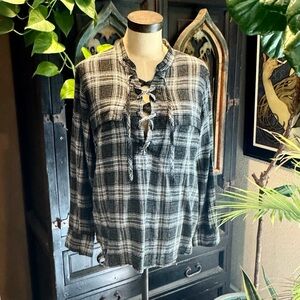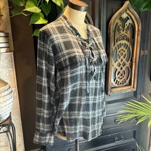 Madewell Terrence lace up pop over plaid flannel wool blend top. Soft raised texture.