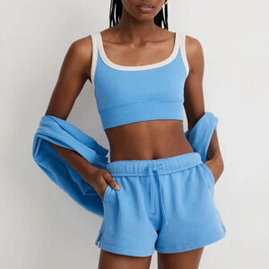 Madewell Terry Ribbed Bralette Crop Top Blue Athleisure Active Casual XS NWT