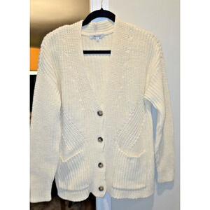 Madewell Textural-Stitch Chunky Knit V-Neck Cardigan Sweater Medium Button Up