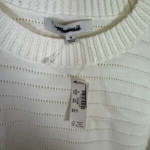 Madewell Textural-Stitch Cotton Sweater Womens M Cream Ribbed Trim Short Sleeve